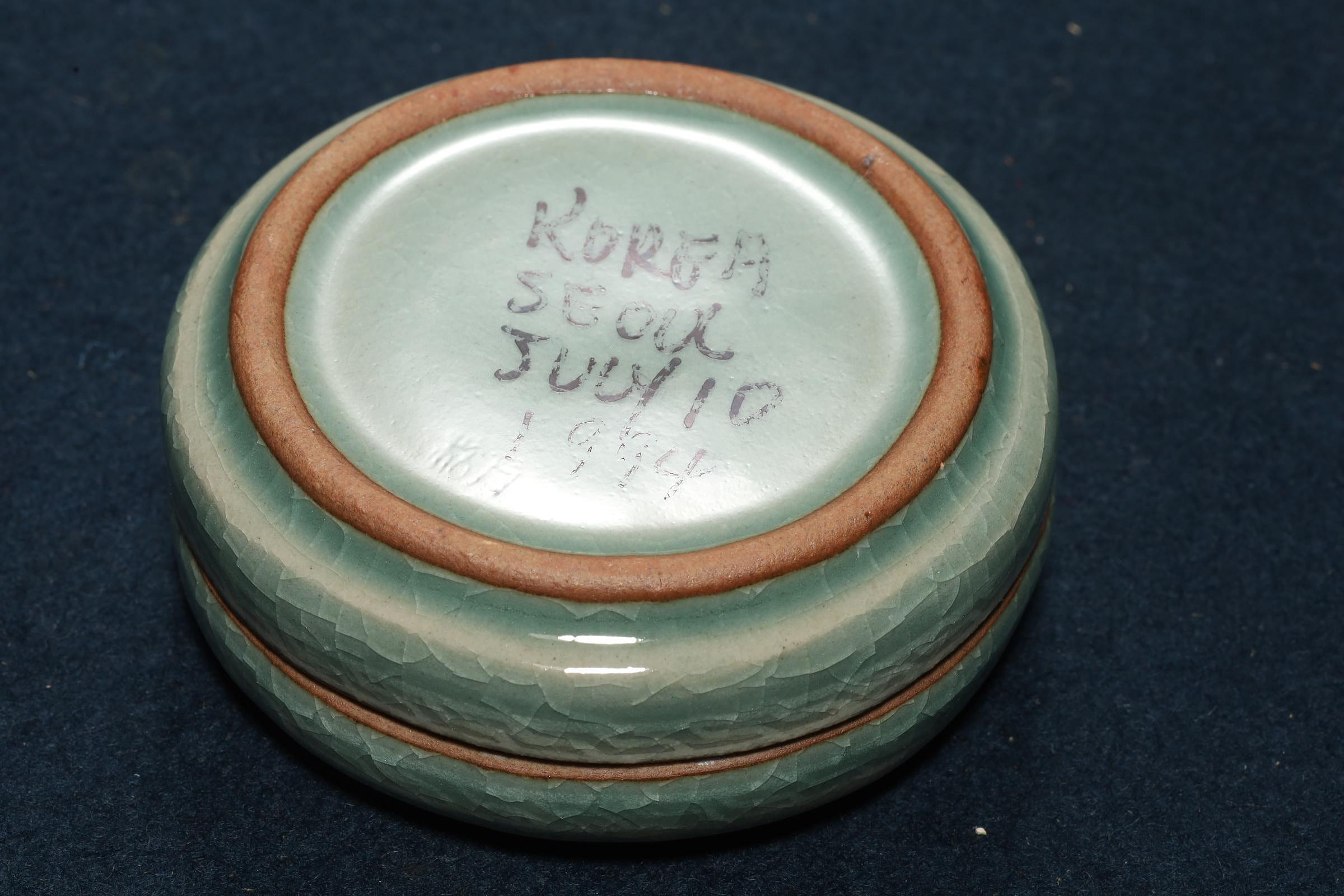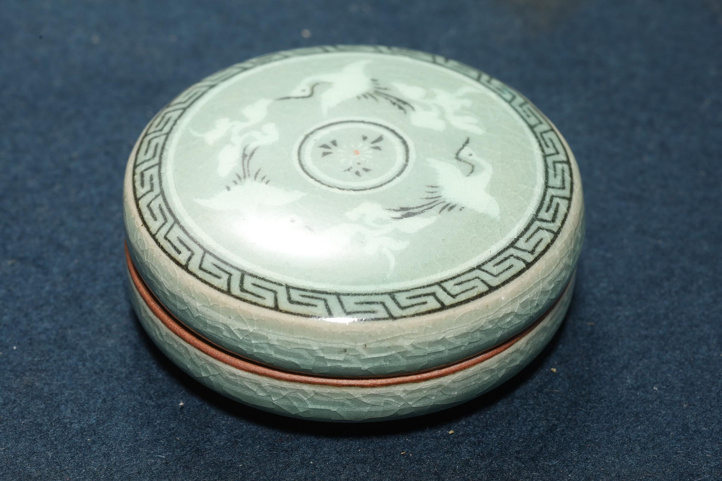 高麗青瓷 象嵌雲鶴紋 香合 印泥盒