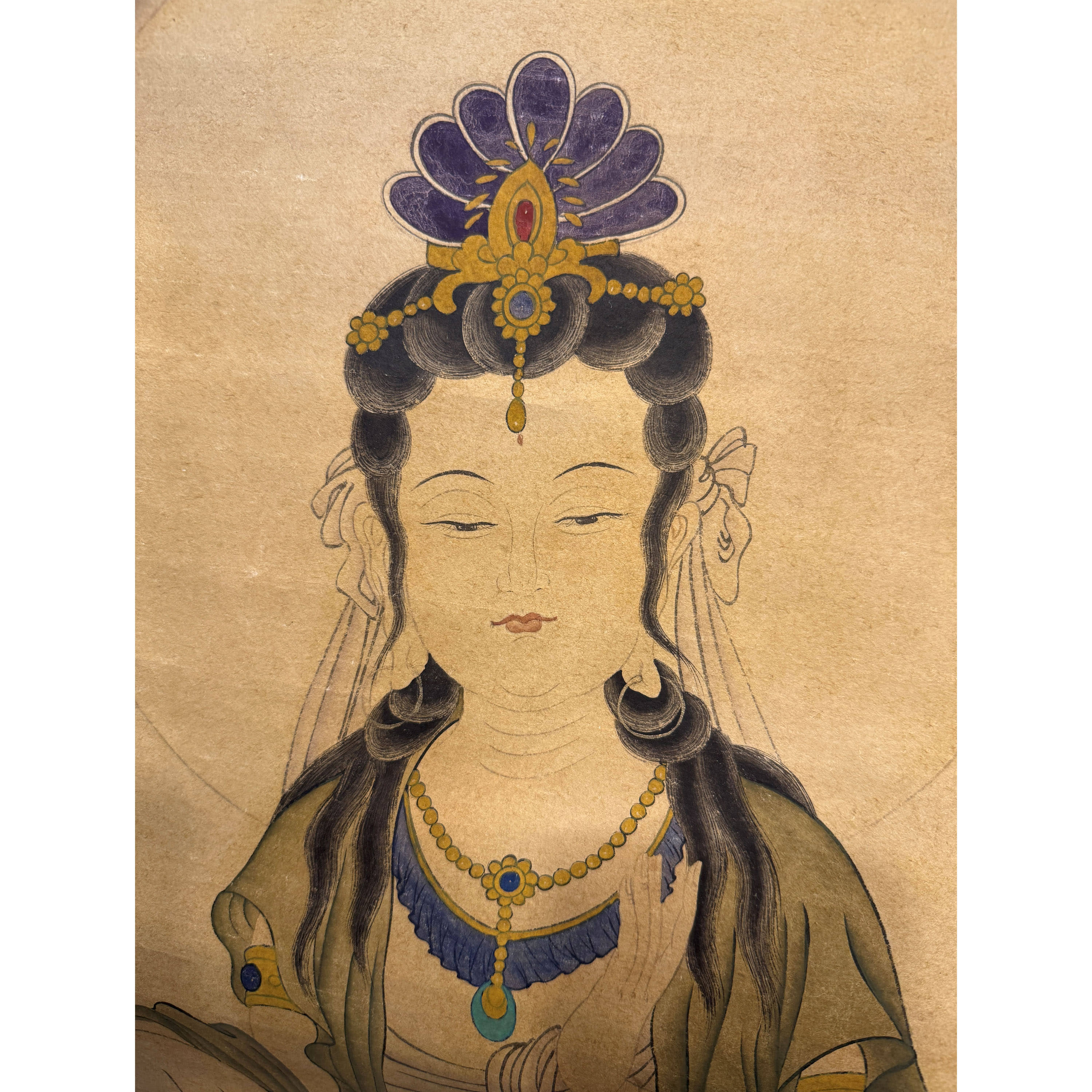 雲氣繚繞:營造出仙境般的氛圍,暗示菩薩的超凡地位。