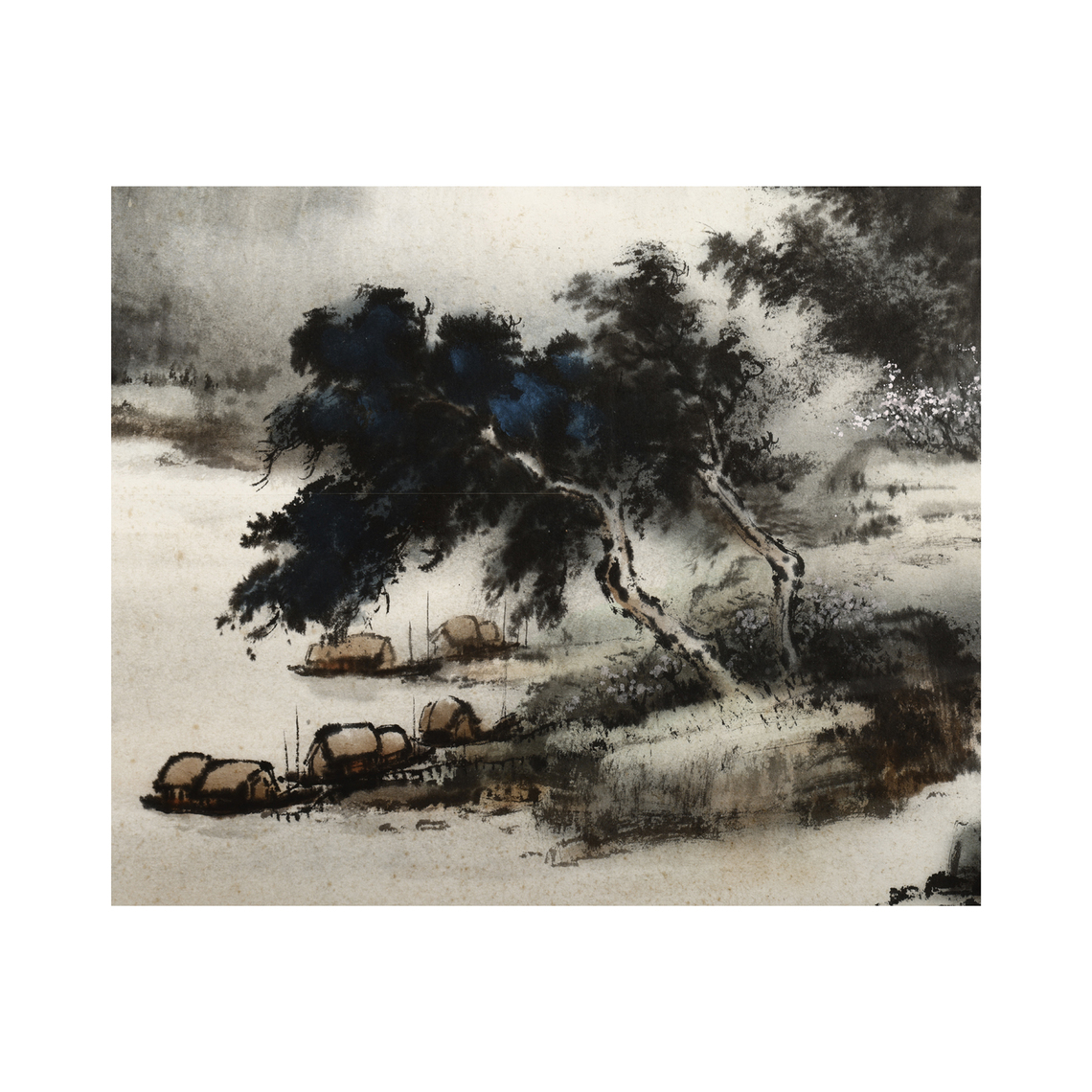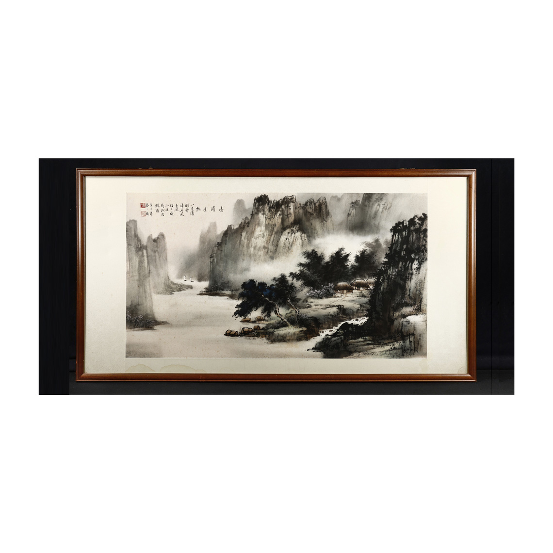 水墨繪於紙本,山嶺層層,崎嶇高聳,霧氣流動於峽中,古木、峻石等有多層次變化,高山峻嶺氣韻生動、大氣磅礡。遠處偶見歸帆,前方屋舍錯落於林間,墨韻濃淡和諧,意境悠遠,觀來饒富雋永之感。有特別濃洌的感覺,作品以寫意手法描繪。線條粗獷奔放,用色渲染淡雅。傳統筆墨功底深厚。 釋文: 遠浦歸帆 八景瀟湘妙 歸舟更色絲 招招煩小住 我賦式微詩 辛未年(瀟湘八景:平沙落雁、遠浦帆歸、山市晴嵐、江天暮雪、洞庭秋月、瀟湘夜雨、煙寺晚鐘、漁村夕照。) 鈐印: 之龍(朱文) 蔡氏(白文) 蔡之龍 嶺風藝苑負責人,水墨畫家,嶺南派知名畫家。蔡文龍習畫,由傳統的工筆畫入手,從喻仲林(1925-1985)、胡念祖(1927-2019)兩師,奠定了他扎實細膩的工筆。後研習嶺南畫派風格,師從嶺南派 歐豪年大師,其中尤以山川氣勢,曲盡其態,高度發揮嶺畫風蒼勁雄渾中,仍帶莊雅秀逸,書法尤擅行草。 1976年(民國65年)曾於日本上野畫廊展出,繼於日本九州巡迴展覽,甚獲好評。並於1985年12/6~12/17於黃氏畫廊舉辦第二次個展|嶺南畫派的自然威性-蔡之龍國畫展。 畫心尺寸約:128 X 73.4 cm 嶺南畫派: 是廣東畫家組成的一個畫派,創建於清末,創始人為「二高一陳」,即高劍父、高奇峰及陳樹人,也稱「嶺南三傑」。崛起於民國初年,提倡﹂融合會今,折衷中西﹁,嶺南畫派為中國傳統國畫中的革命派,以創新為宗旨,是在西方藝術思潮的衝擊下、近代中國藝術革新運動中逐步形成的。嶺南畫派主張引進西洋畫法,融合中西繪畫之長,以革命的精神和強烈的時代責任感改造中國畫,並保持了傳統中國畫的筆墨特色,創製出有時代精神、有地方特色、氣氛酣暢熱烈、筆墨勁爽豪縱、色彩鮮艷明亮、水分淋漓、暈染柔和勻淨的現代繪畫新格局和創新作品。- 水墨紙本 大橫幅(10才) 遠浦歸帆 蔡之龍