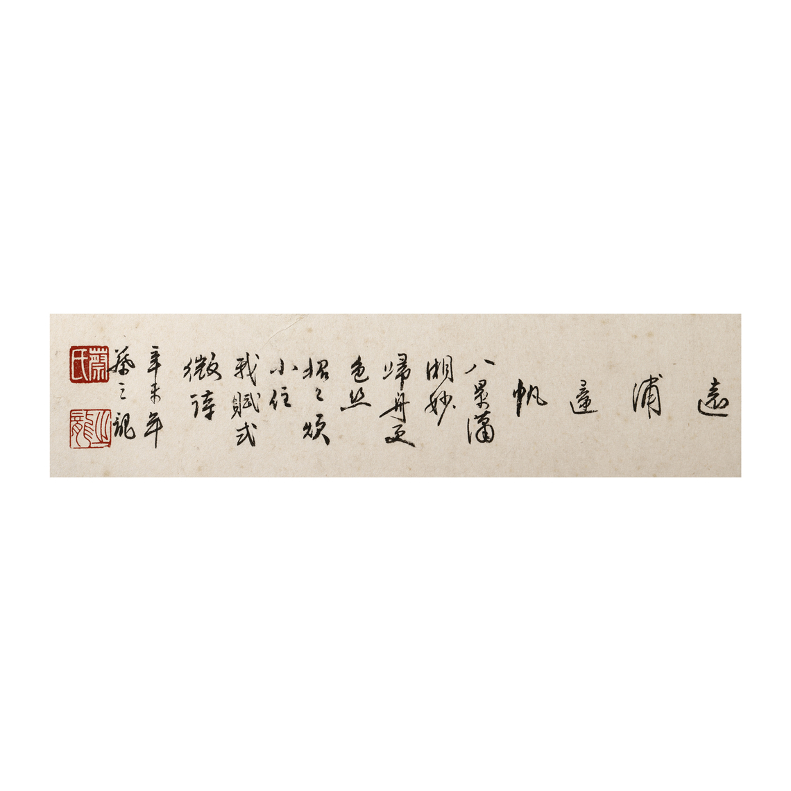 - 遠浦歸帆 八景瀟湘妙 歸舟更色絲 招招煩小住 我賦式微詩 辛未年 (瀟湘八景:平沙落雁、遠浦帆歸、山市晴嵐、江天暮雪、洞庭秋月、瀟湘夜雨、煙寺晚鐘、漁村夕照。)