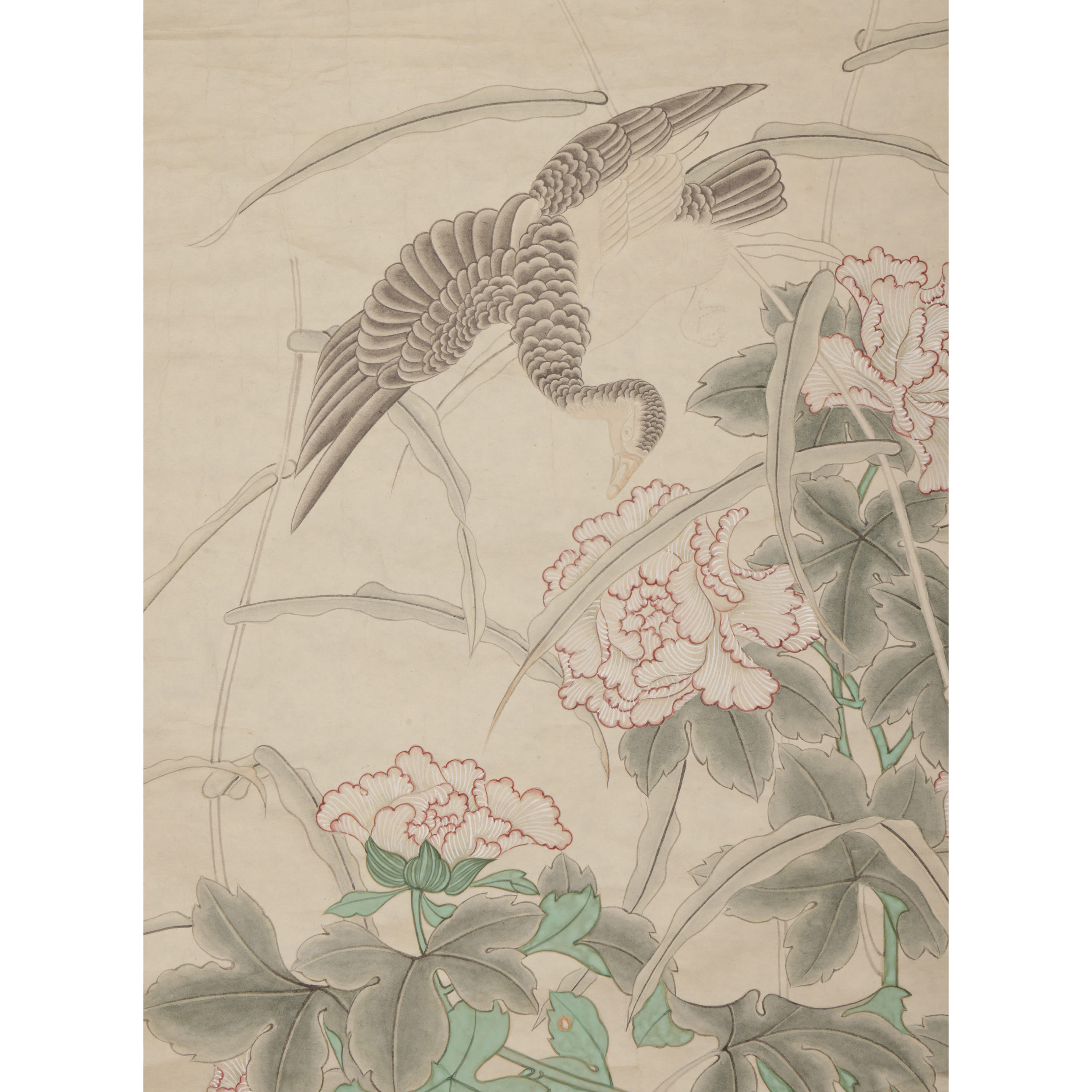 這幅畫稿構圖精緻、筆法細膩的工筆花鳥畫稿,疑似出自張大千早期創作時期。畫中鳥禽姿態生動,花卉綻放自然,展現出工筆畫的線條美與設色雅韻。此系列作品不僅體現了畫家對自然的深刻觀察,也蘊含文人畫的詩意與靈性。整體風格與張大千 1920–1930 年代早期工筆花鳥作品高度契合,具備重要的研究與收藏價值。