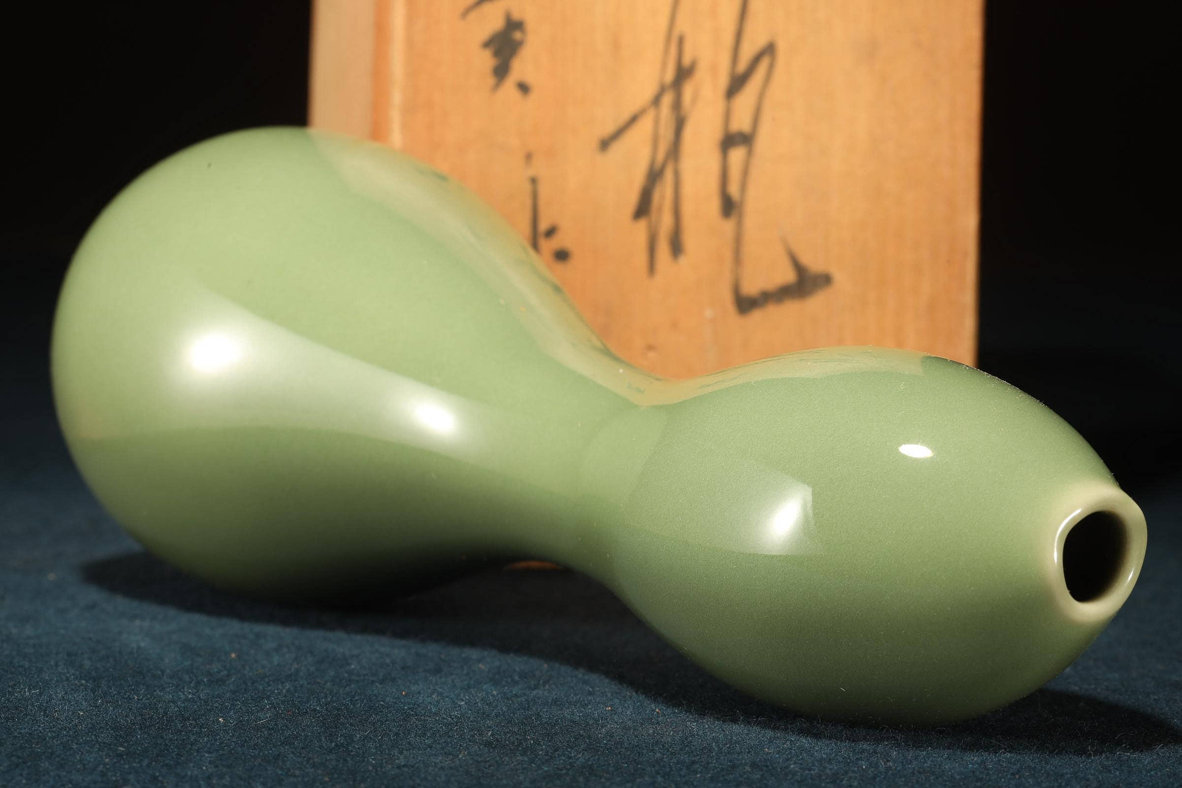 日本名家 加藤實 青瓷 瓢形葫蘆瓶 原供箱
