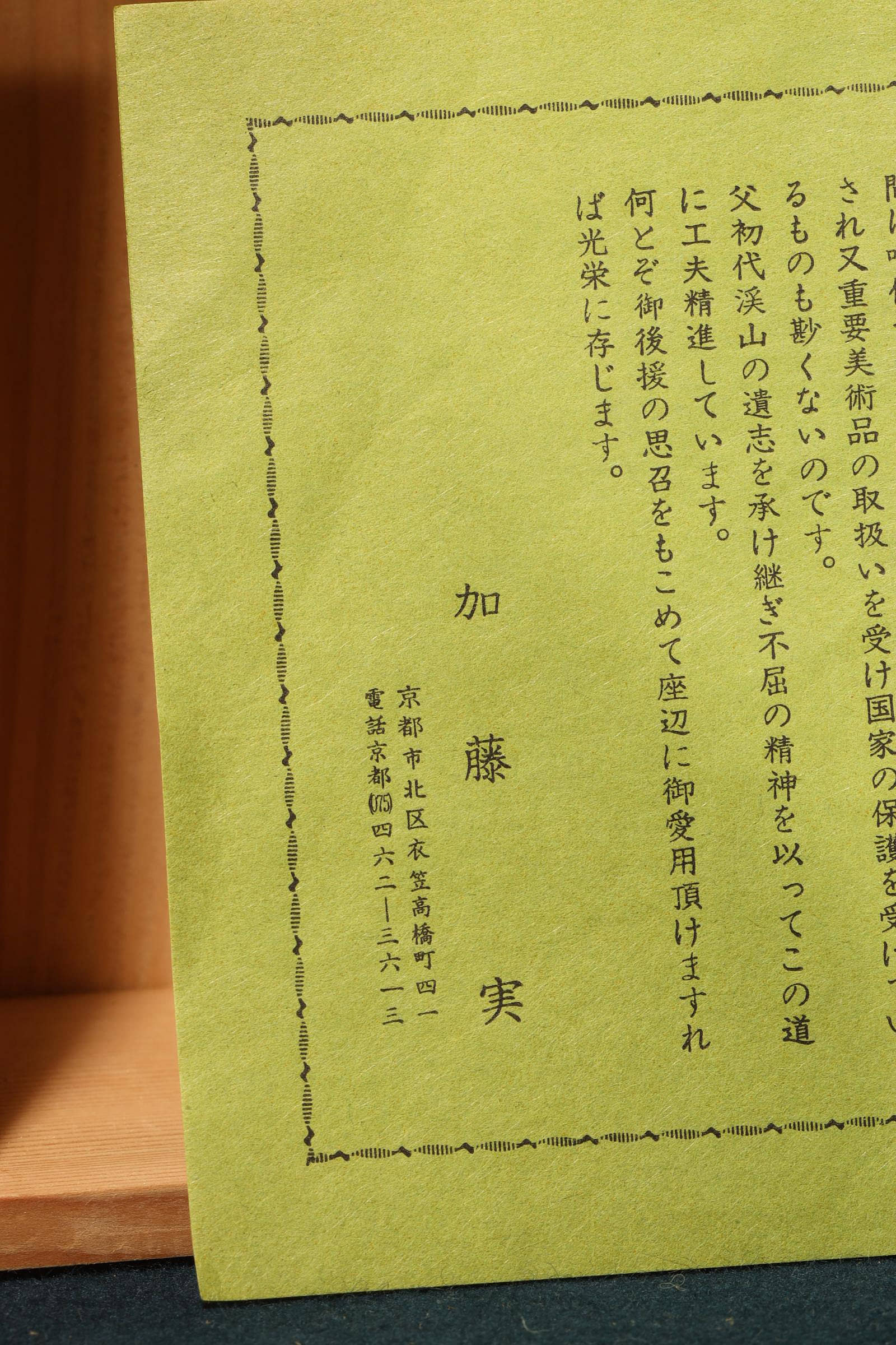 - 加藤泰一 (四代目加藤溪山):家族的第三代傳人(1964年生)。他在繼承祖父與父親的青瓷基礎上,於京都北區設立工房,融合了義大利留學的經歷,創作風格更為現代且多元。