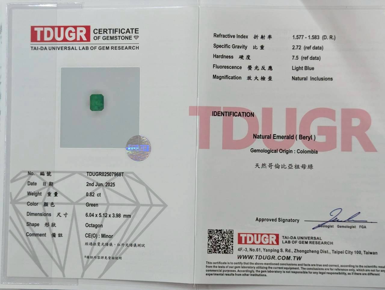Featured author signature: 天然祖母綠戒 哥倫比亞 0.82CT 銀台 台大證書