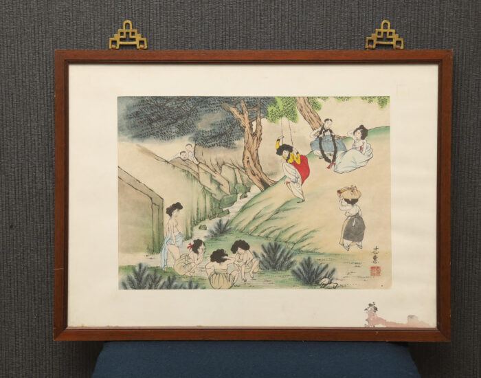名家 志惠 水墨設色紙本 手繪摹寫 申潤福 蕙園畫冊 端午風情 鞦韆