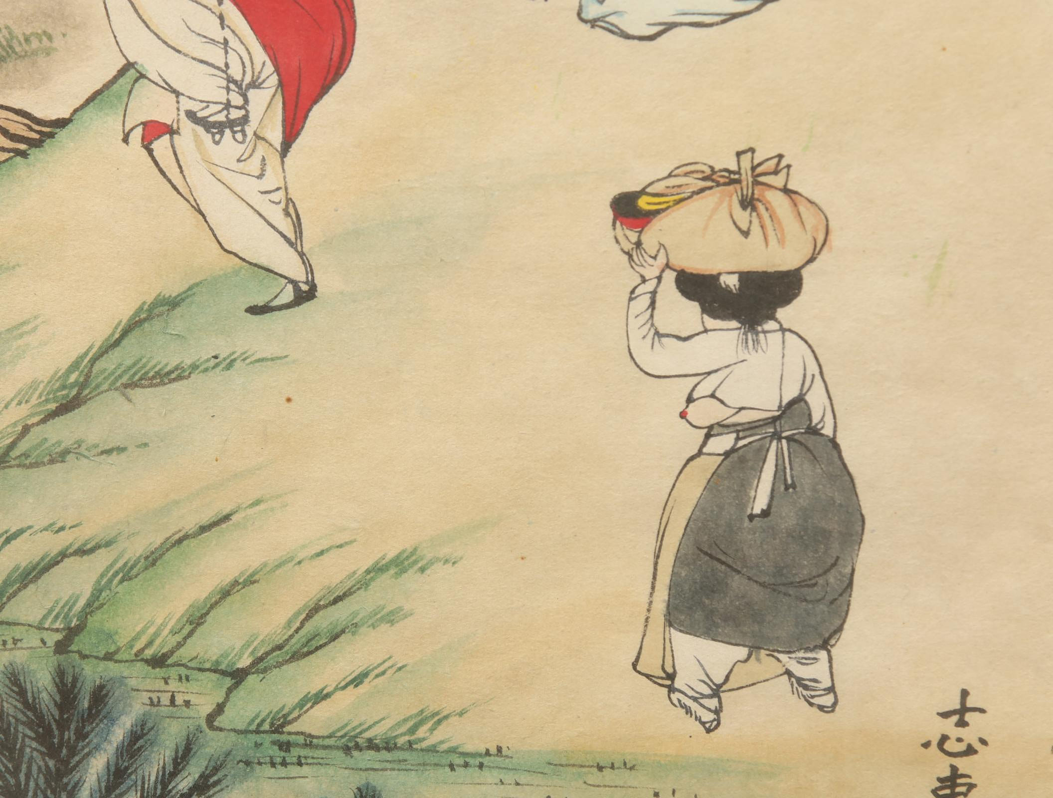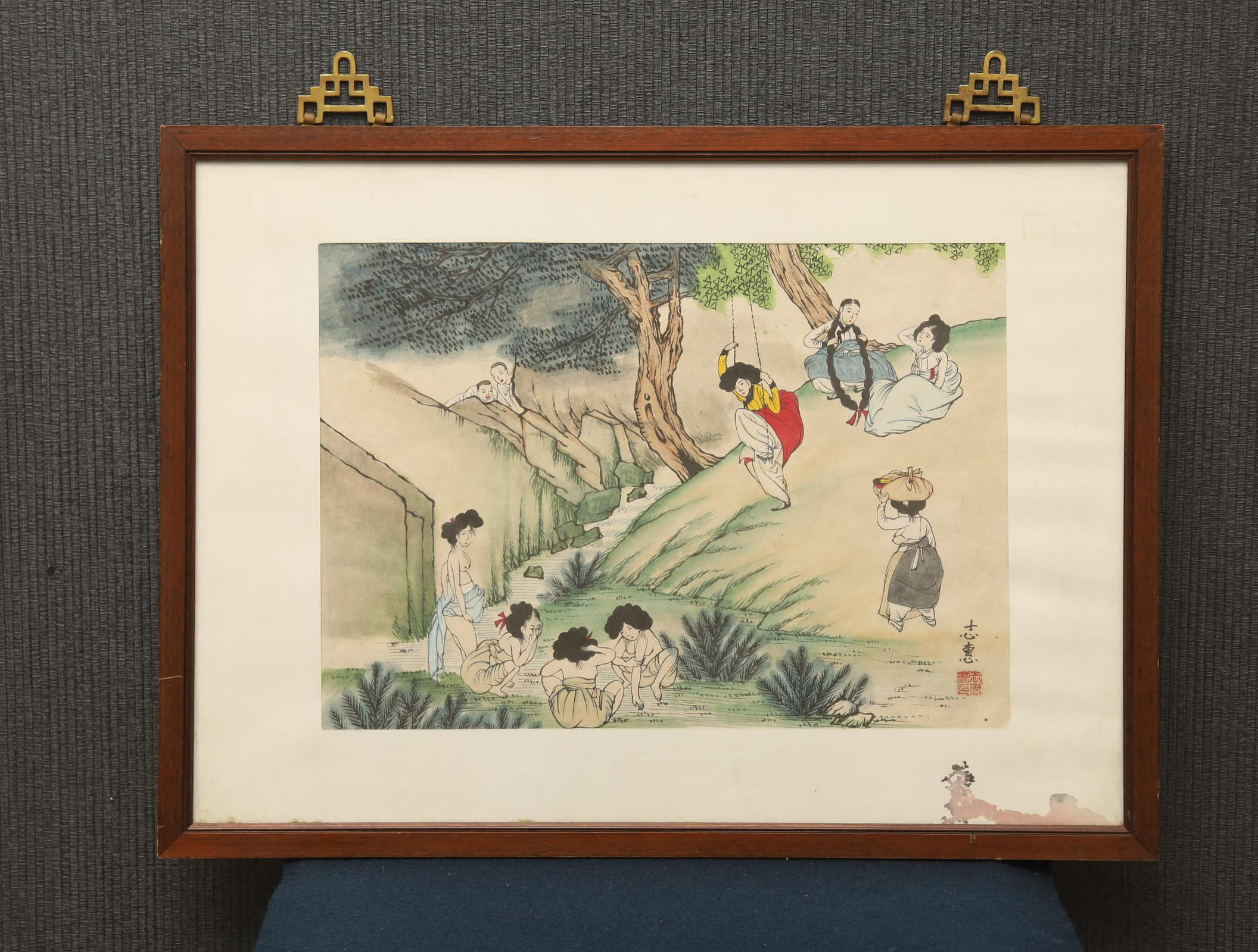 「端午風情」(韓語:단오풍정)這幅畫生動地描繪了朝鮮時代婦女在端午節當天的習俗與生活場景: